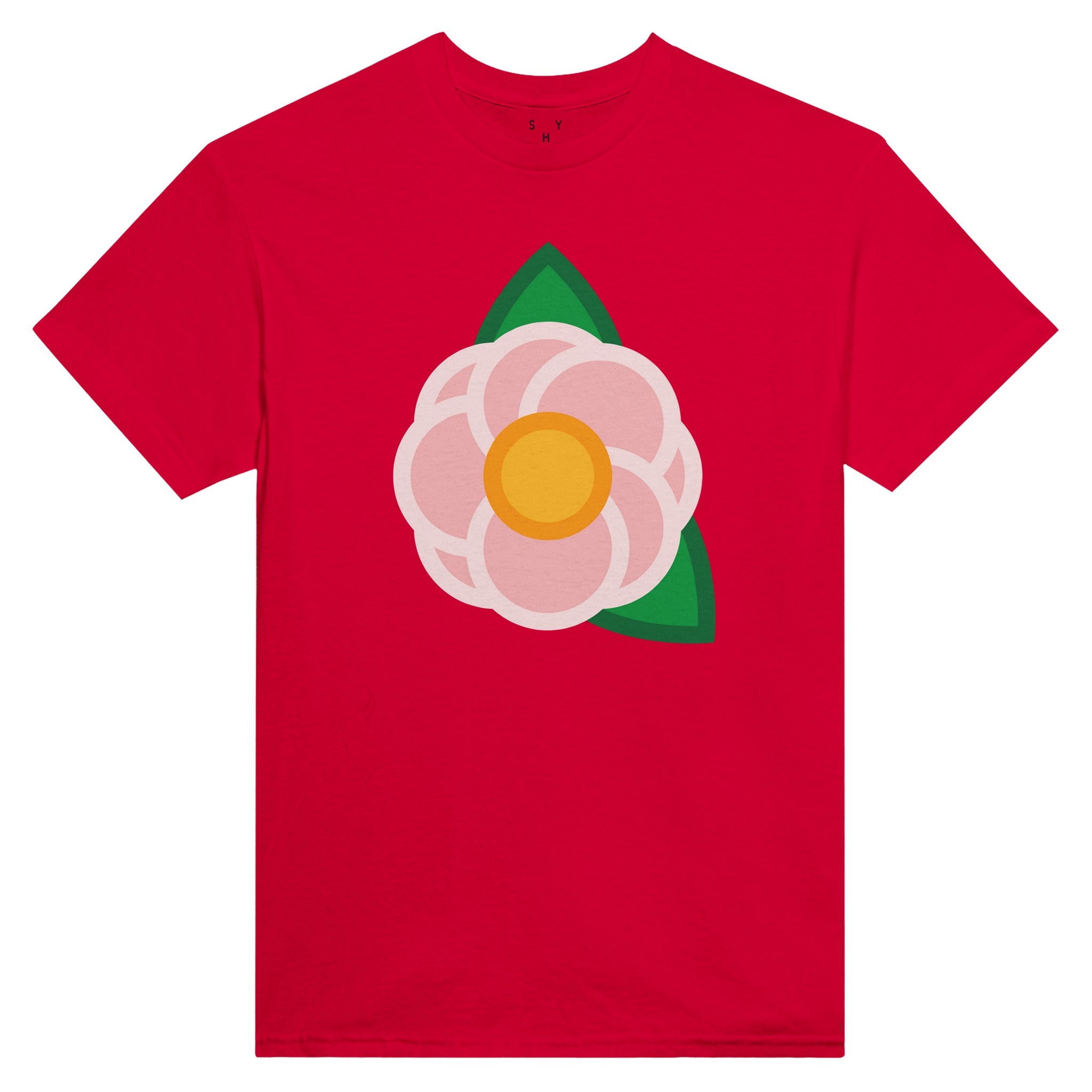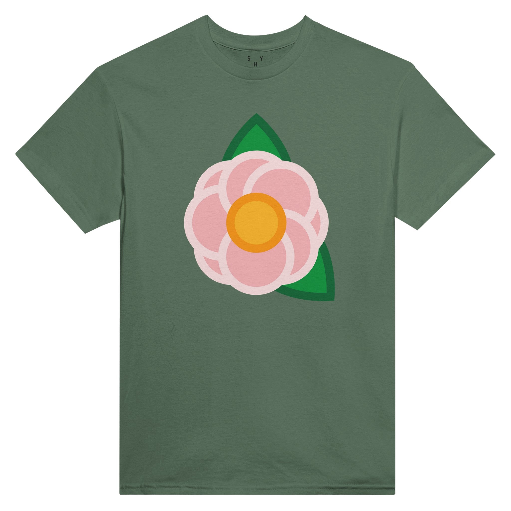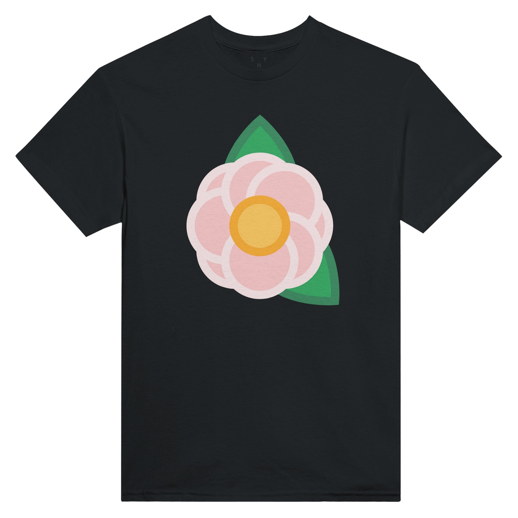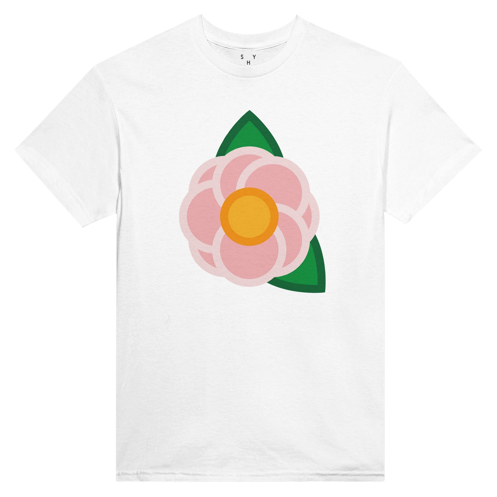 A Simple Pink Rose on the front of a unisex T