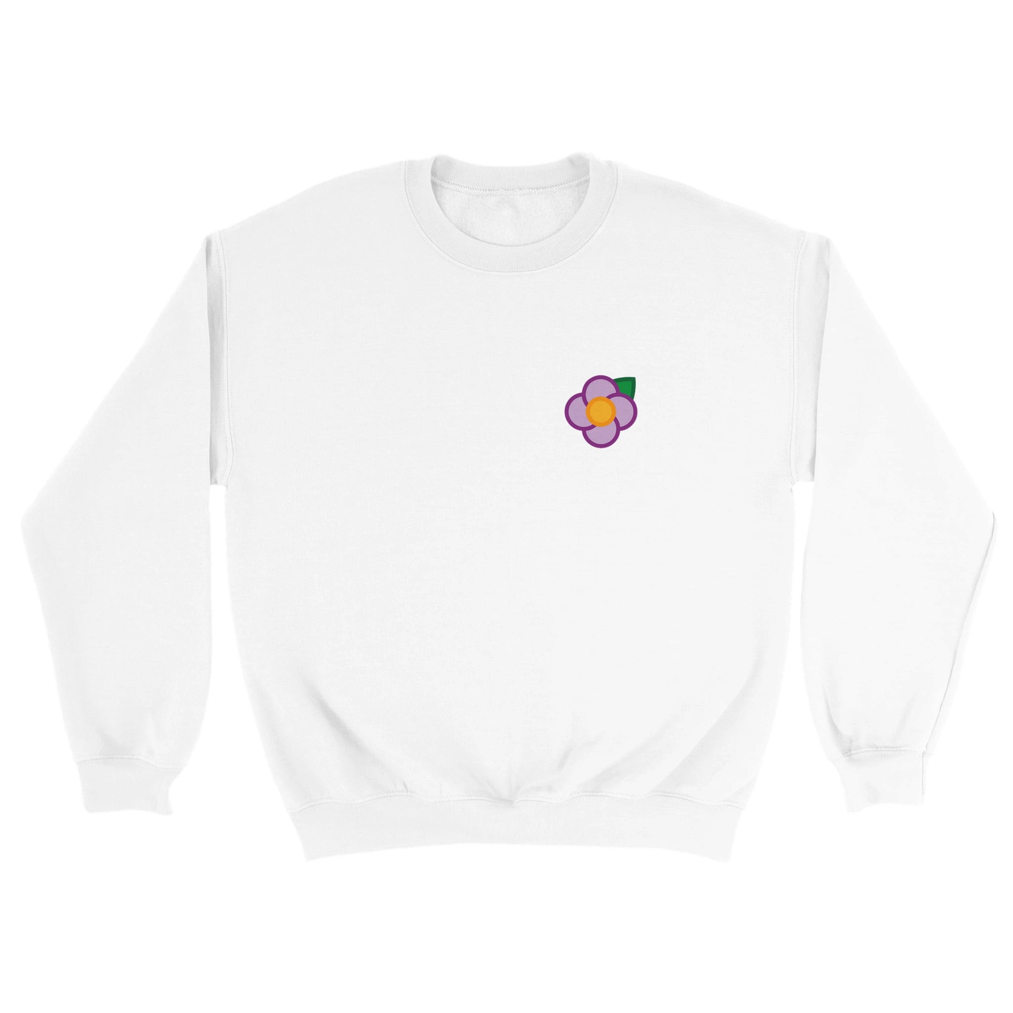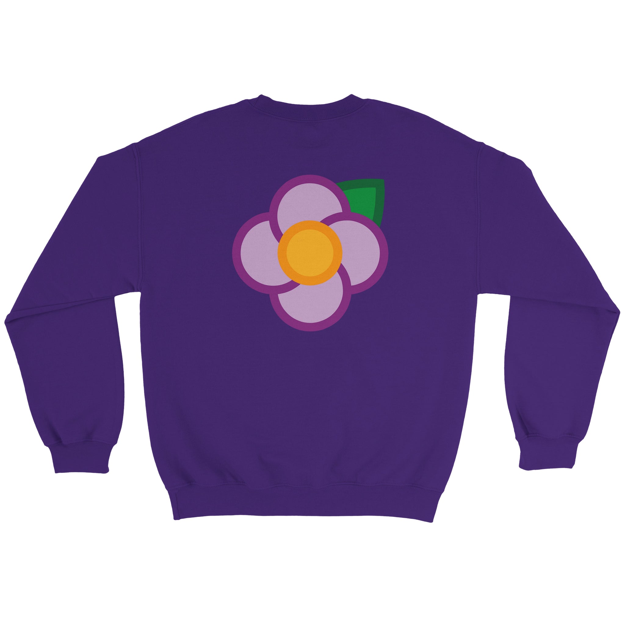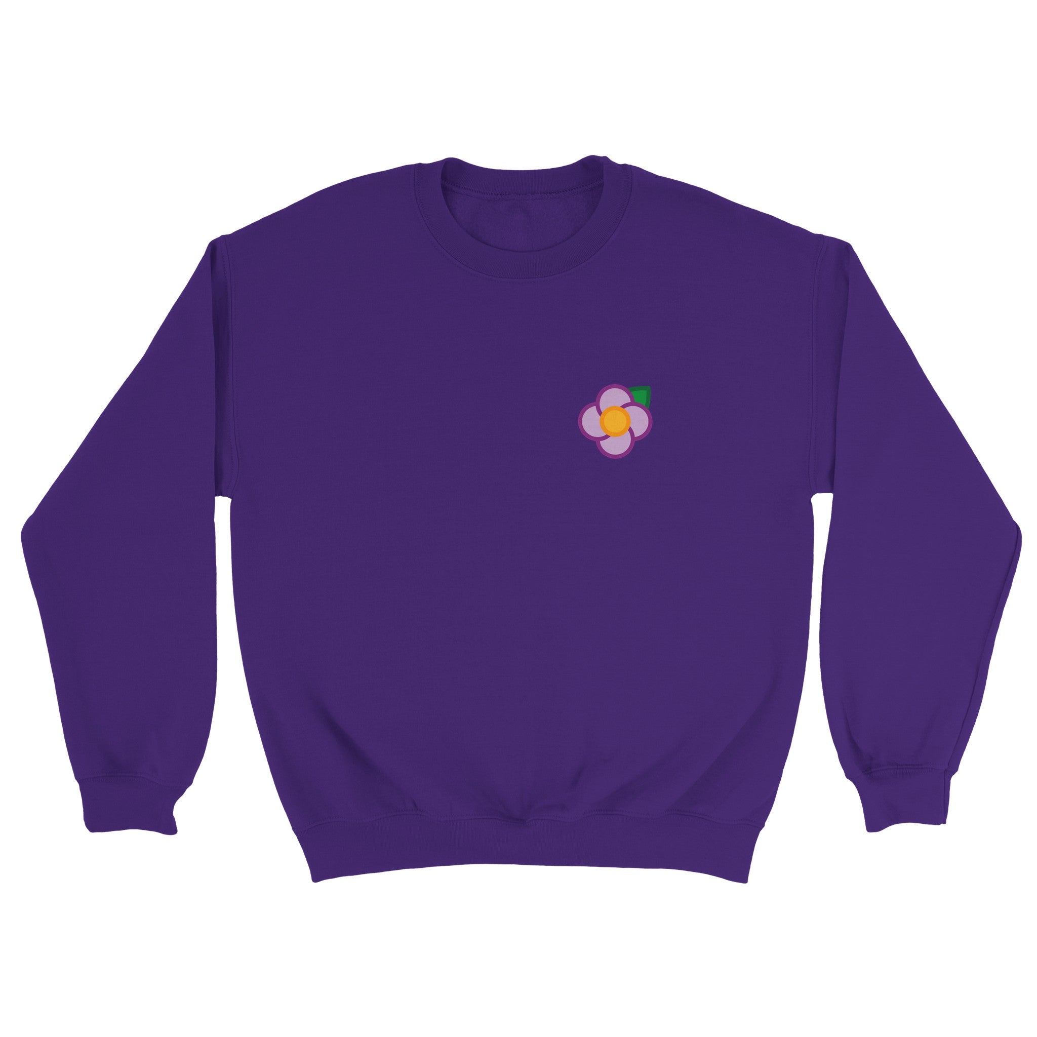 A Simple Purple Rose small on the left hand breast & large on the back of a unisex sweatshirt