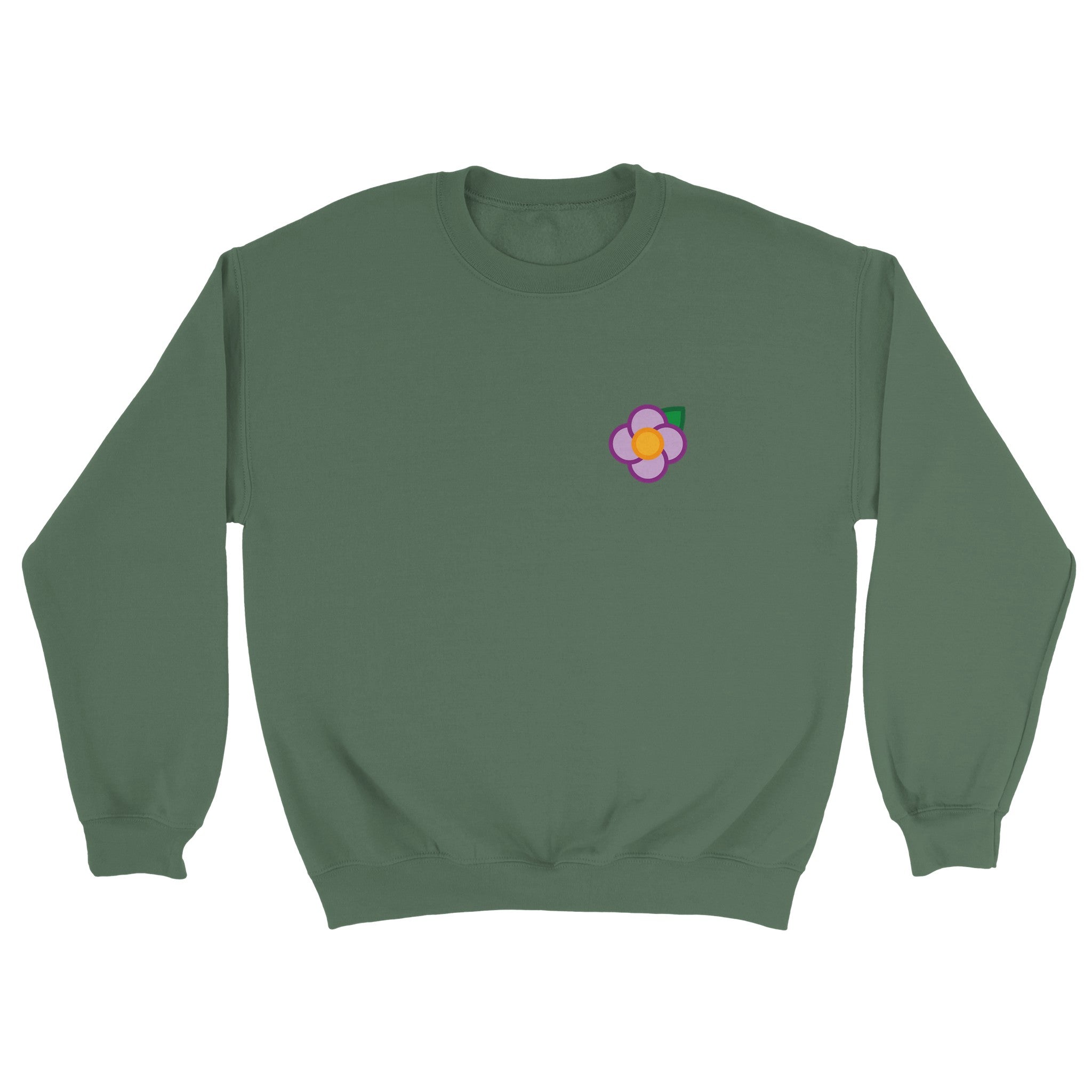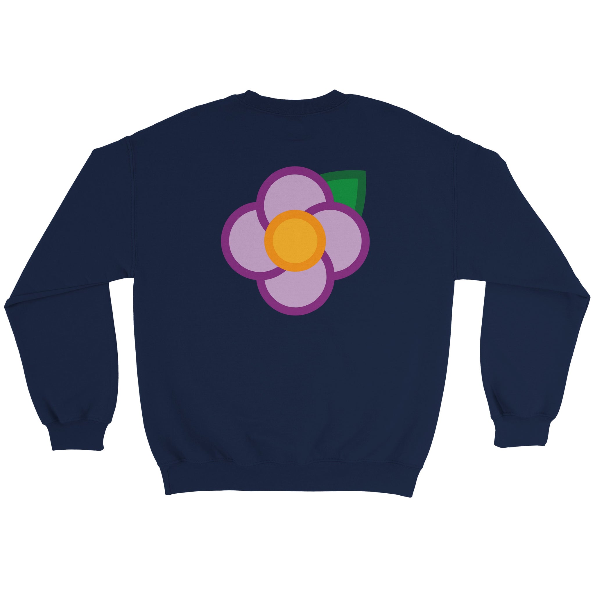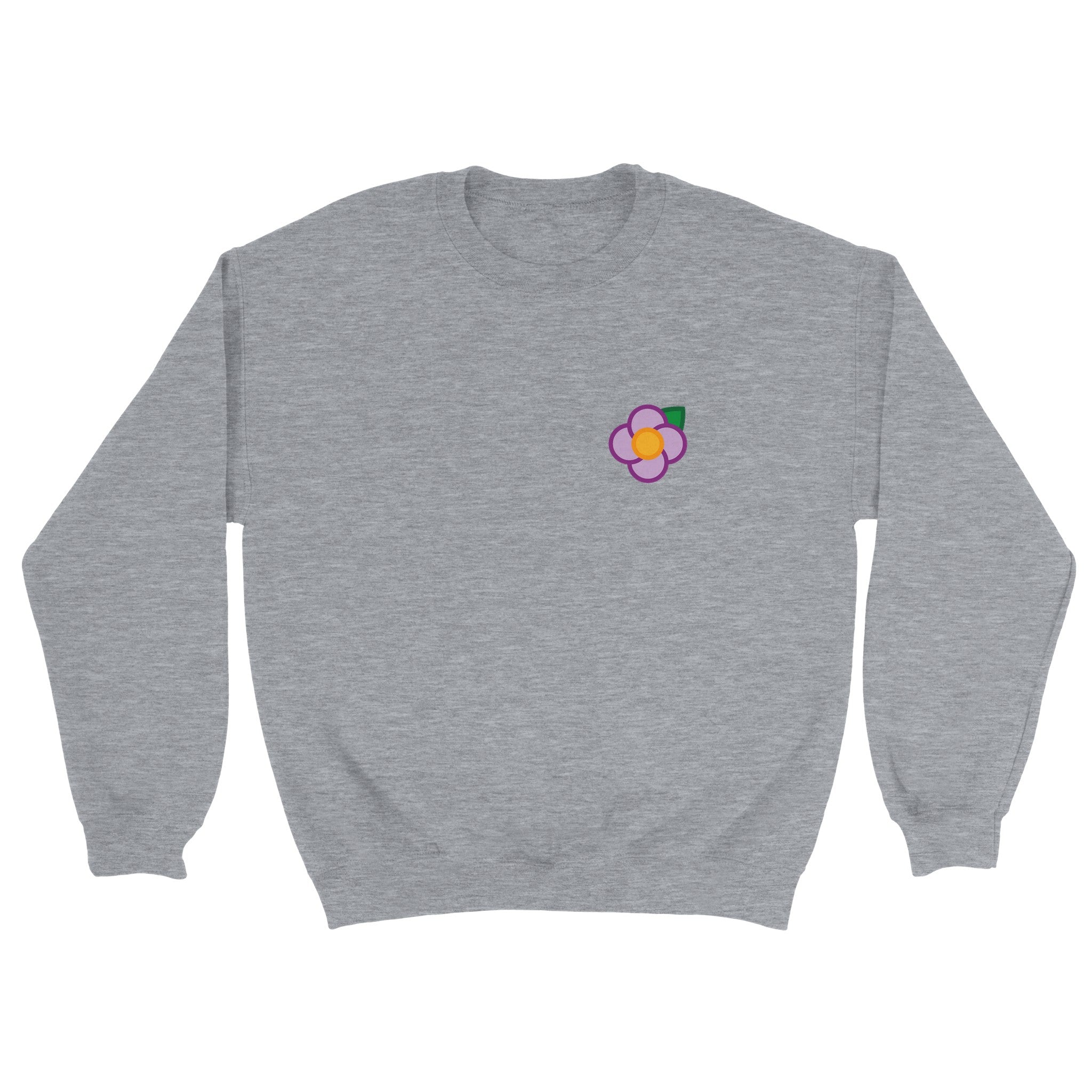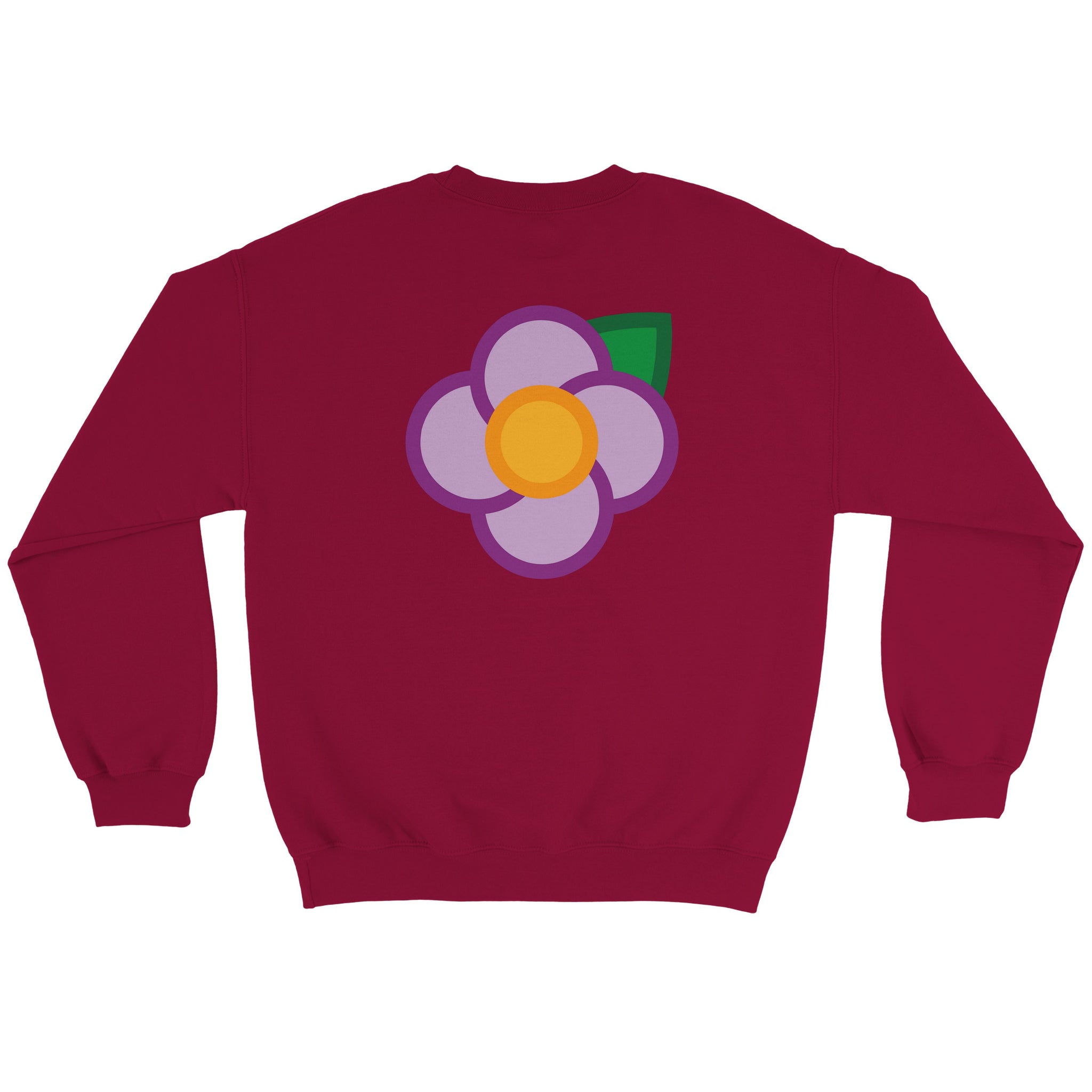 A Simple Purple Rose small on the left hand breast & large on the back of a unisex sweatshirt