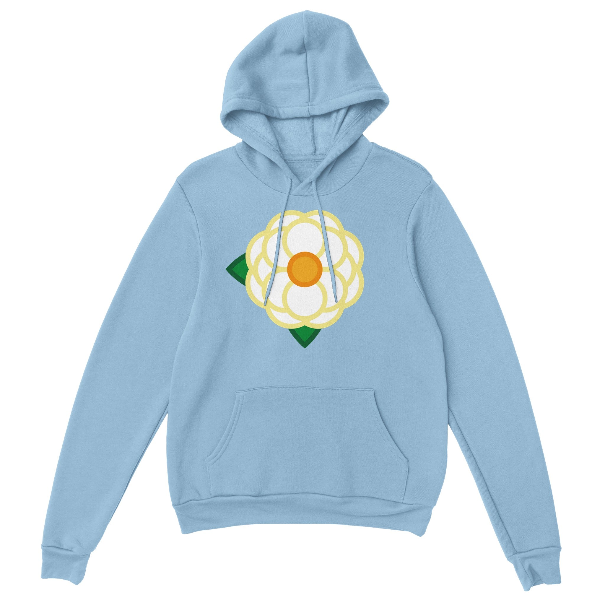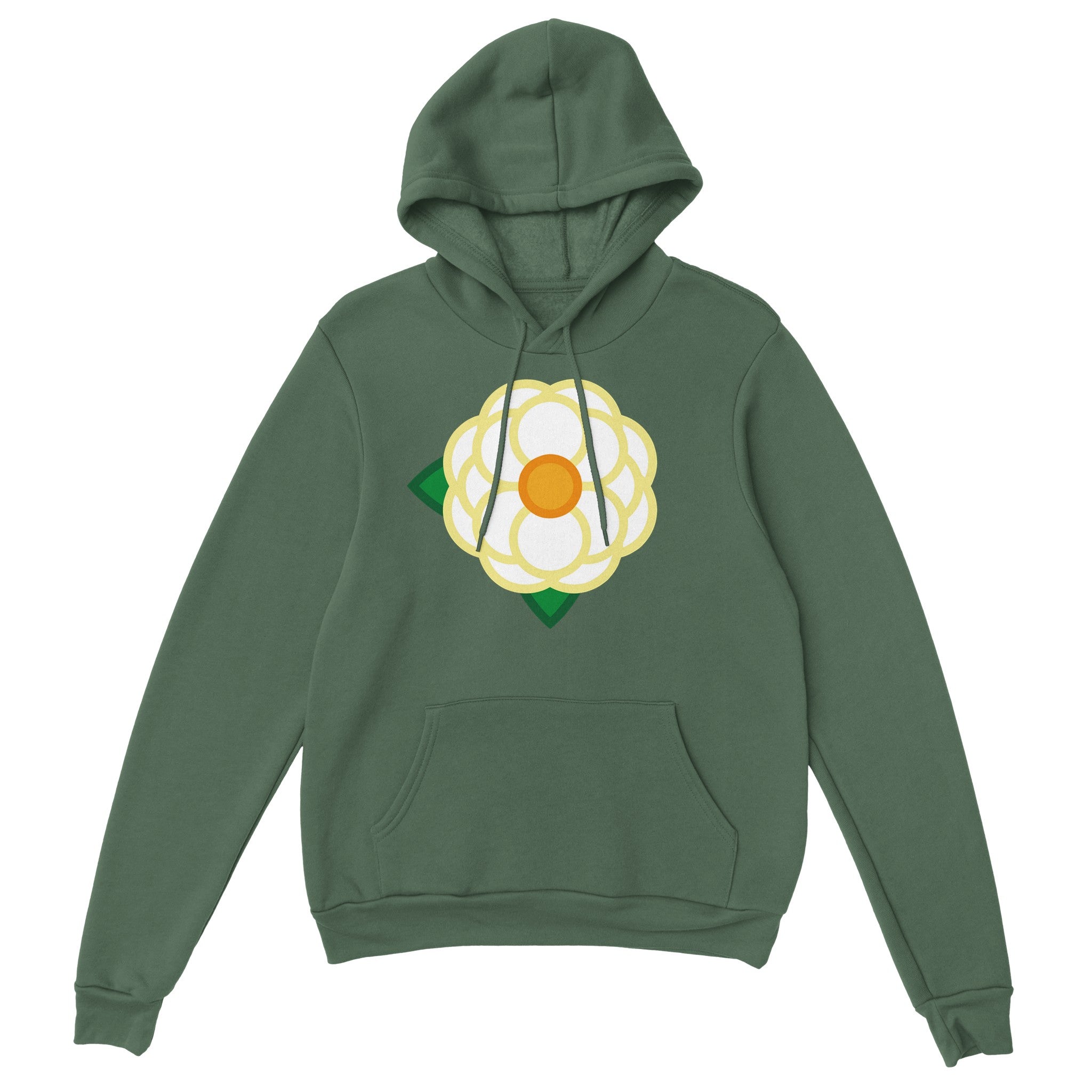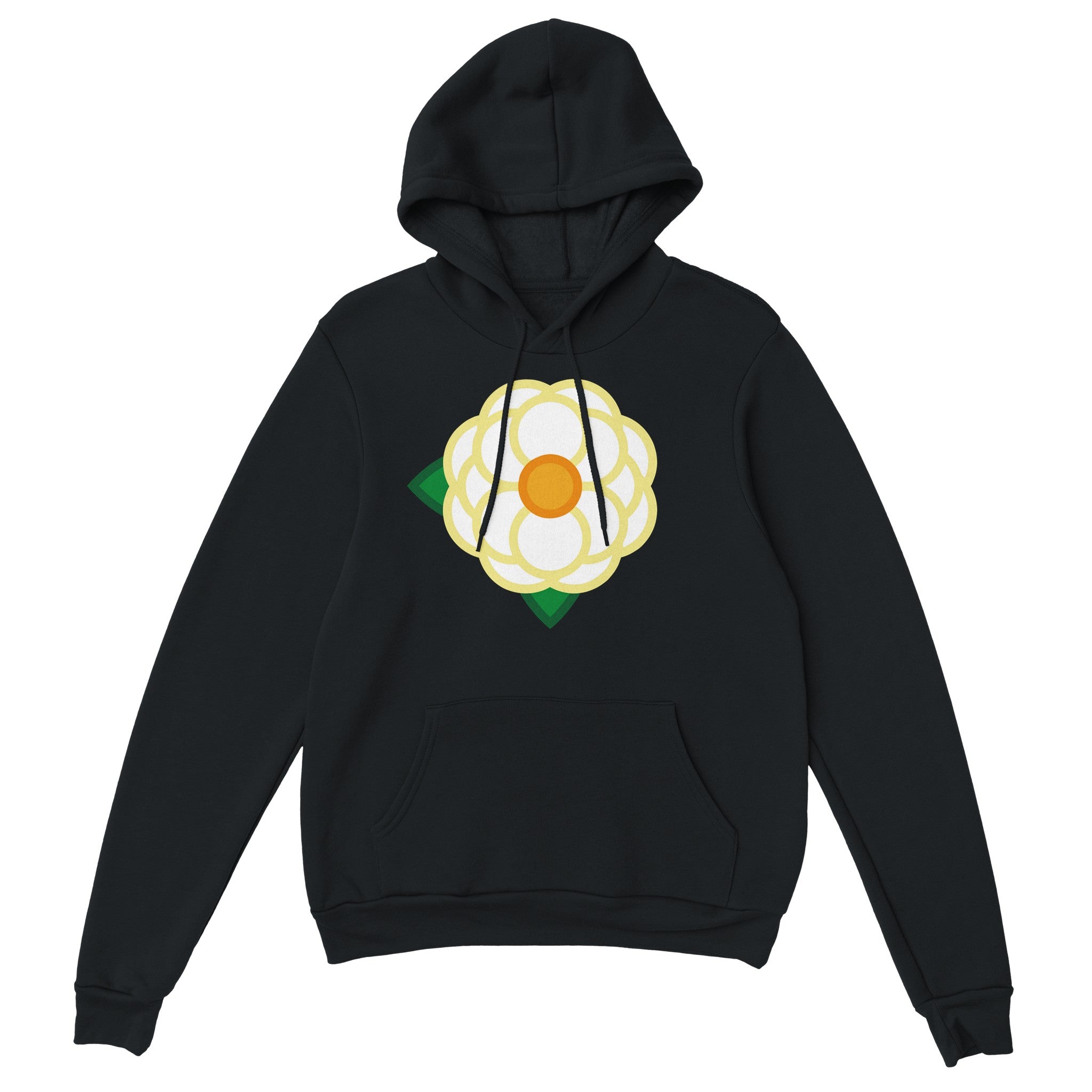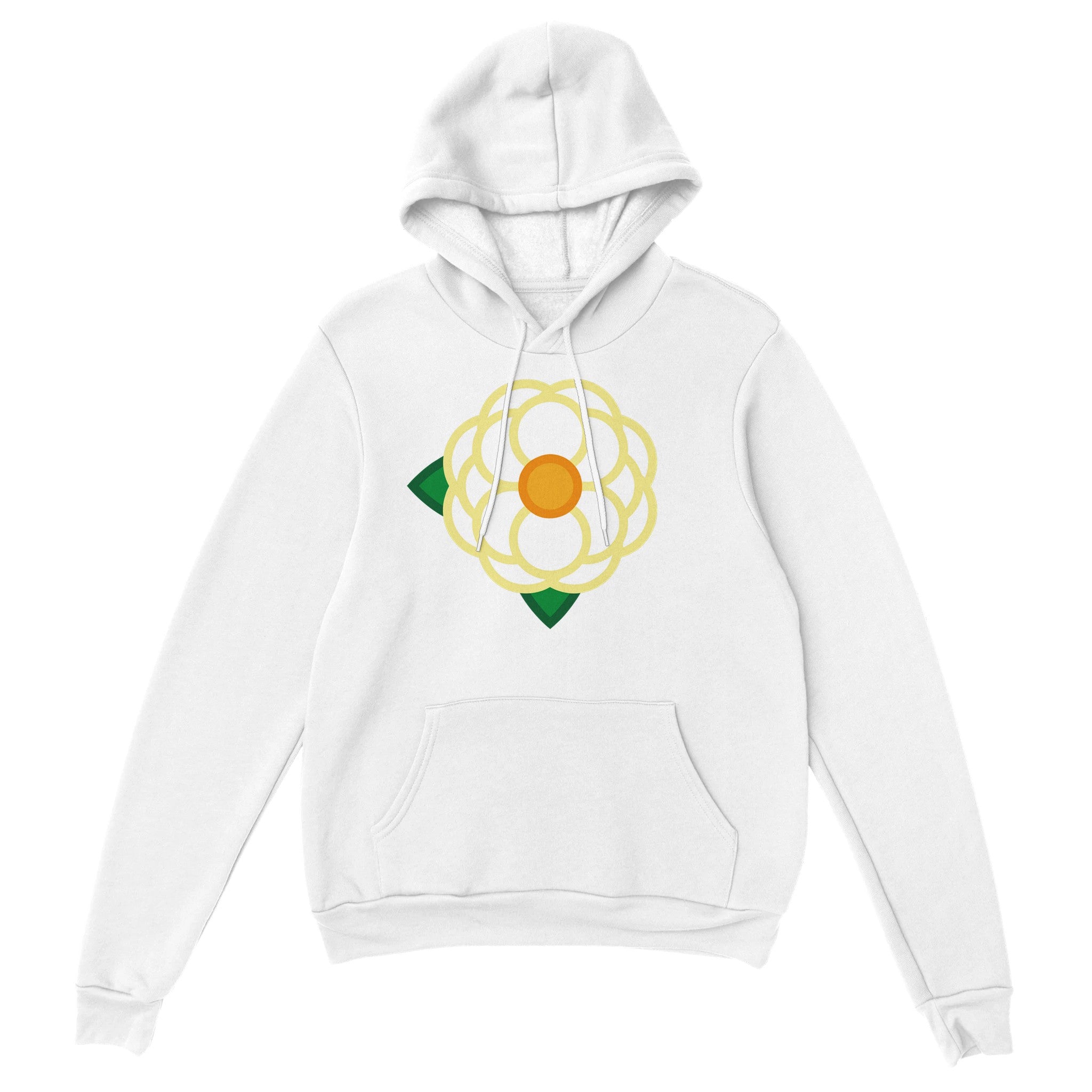 A Simple White Rose on the front of a unisex hoodie